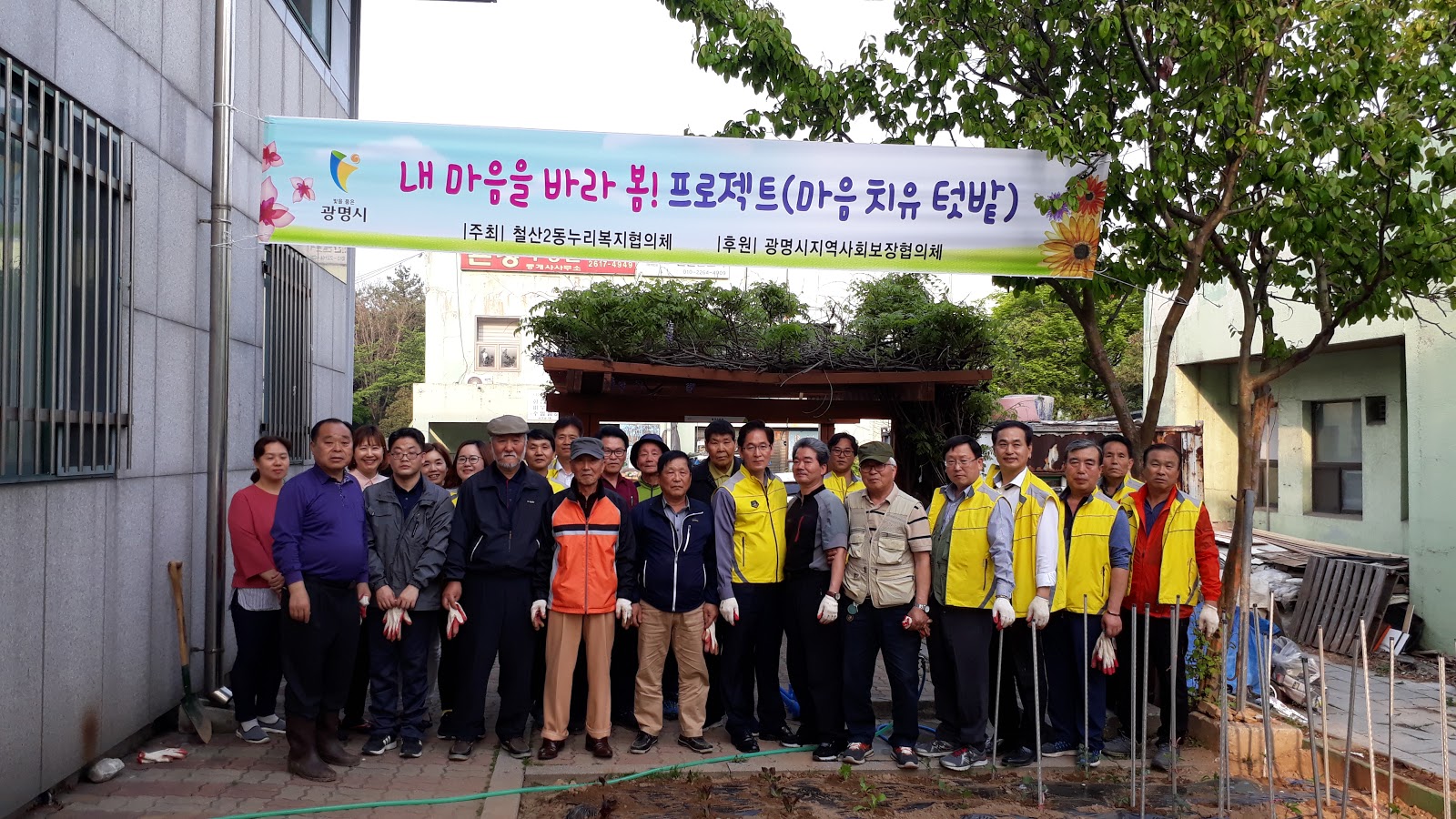 철산2동 누리복지협의체(민간위원장 이정환)는 2018년 동 누리복지협의체 특성화 공모사업으로 선정된 “내 마음을 바라 봄! 프로젝트( 텃발가꾸기 및 미술치료를 통한 정서안정)를 30일(월) 오후 4시 철산2동 행정복지센터에서 시작했다.